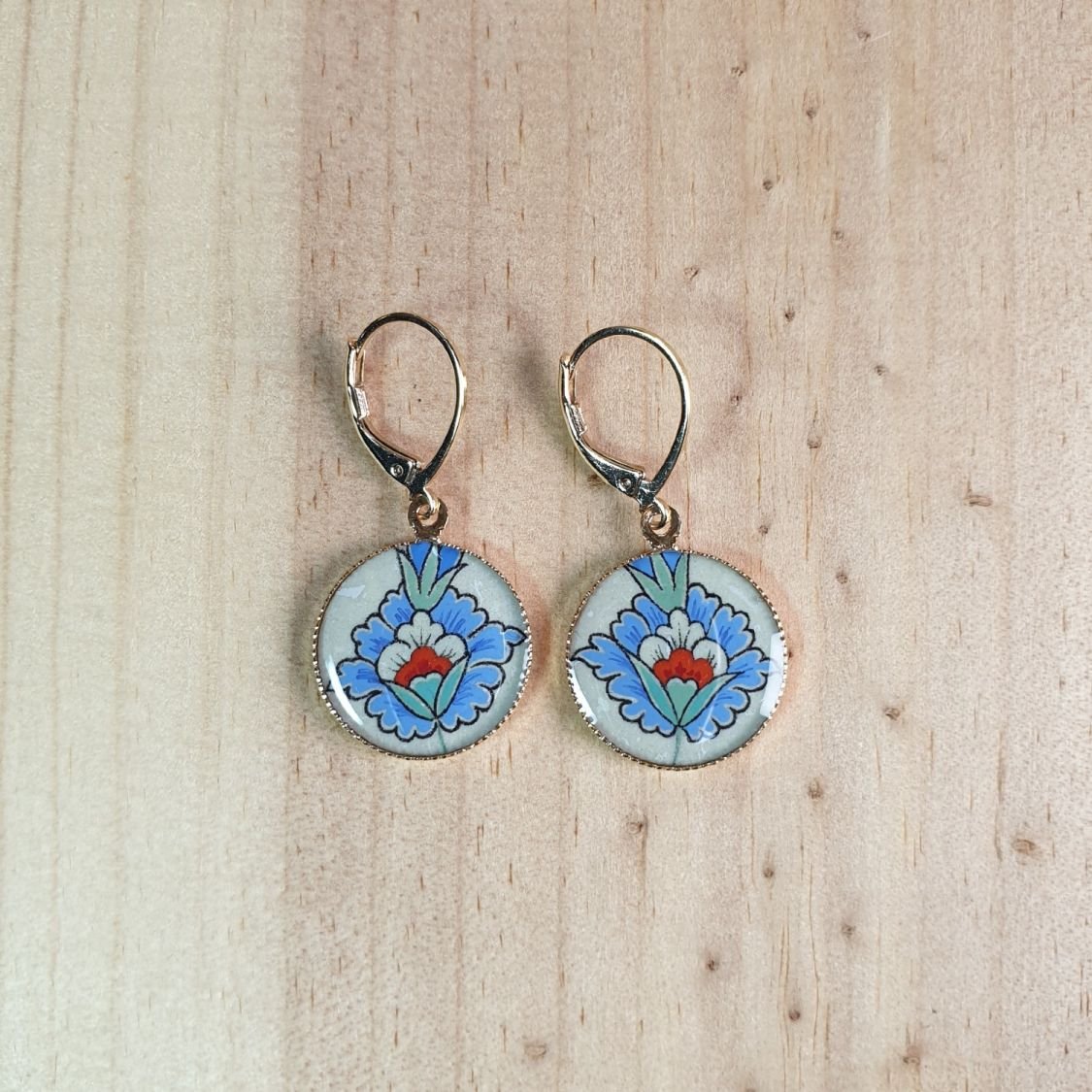 Ces boucles d'oreille discrètes sont ornées d'une fleur d'inspiration orientale.