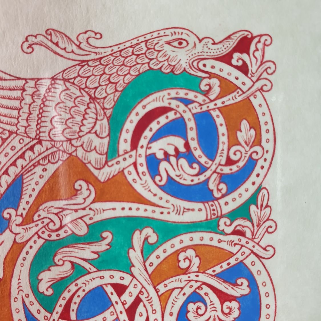 Cette initiale est l'interprétation d'une lettrine issue d'une bible du XIIe siècle.
