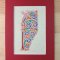 Enluminure avec passe-partout et papier cartonné au dos, protégée par une pochette transparente.