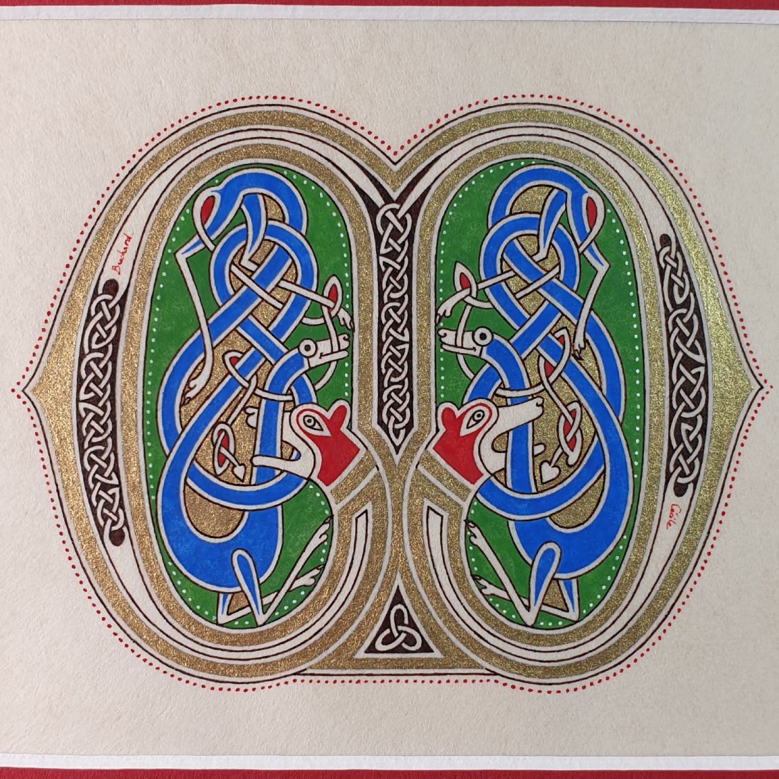 Cette initiale est inspirée d'une lettrine issue de la Seconde Bible de Charles le Chauve (fin du IXe siècle).