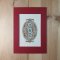 Enluminure avec passe-partout et papier cartonné au dos, protégée par une pochette transparente.