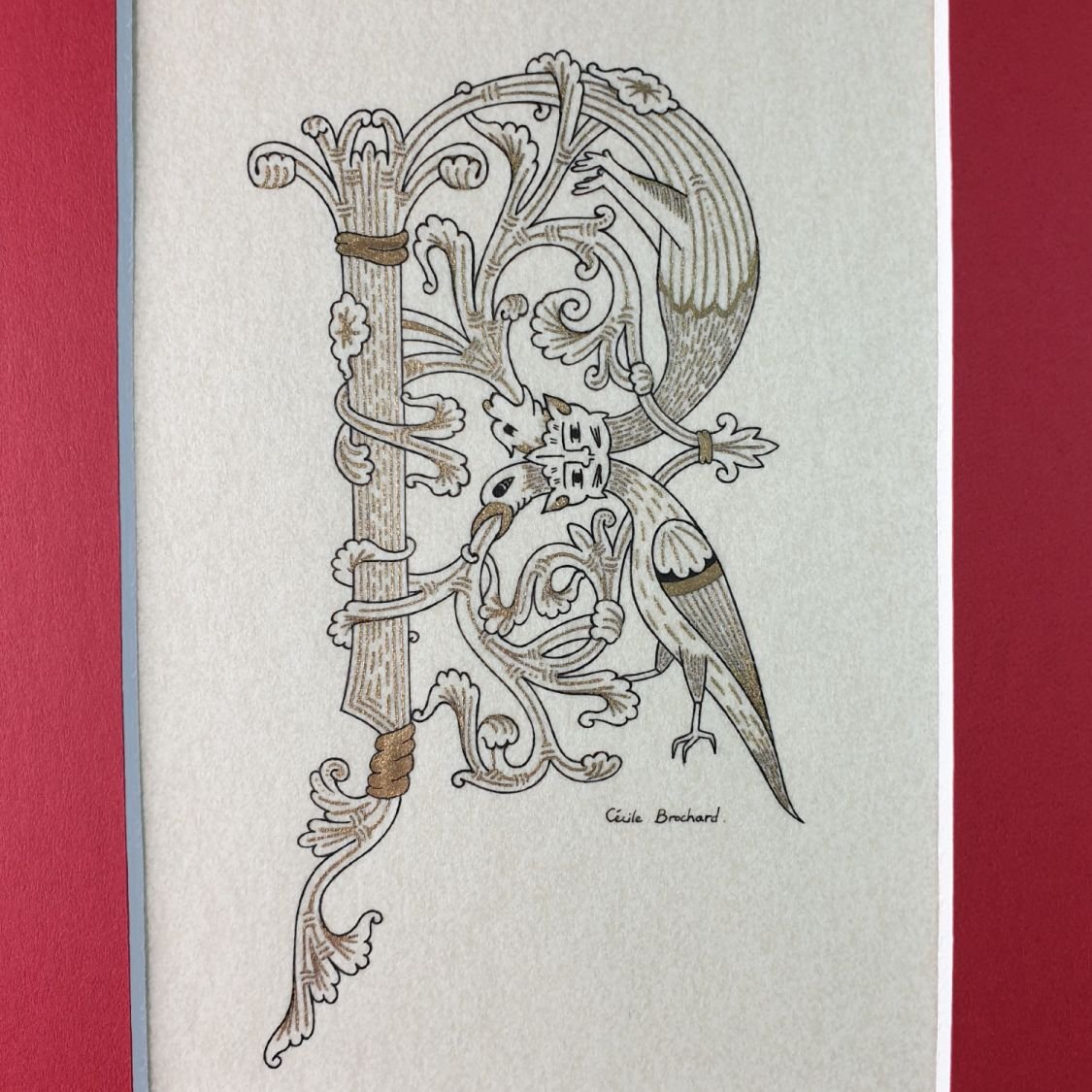 Lettre R enluminée style roman