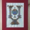 Enluminure avec passe-partout et papier cartonné au dos, protégée par une pochette transparente.