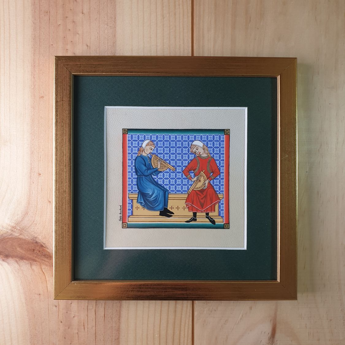 Cette enluminure est l'interprétation dune miniature des Cantigas de Santa Maria, un recueil de chansons en l'honneur de la Vierge Marie et de ses miracles (XIIIe siècle).